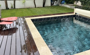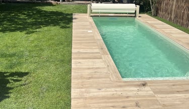Revêtement : Juste après la maçonnerie et travaux d'étanchéité, nous poserons vôtre revêtement souhaité - Carrelage ou liner -